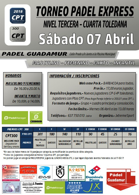 CPT300 GUADAMUR - PADEL Guadamur - TORNEO EXPRESS - FASE DE GRUPOS